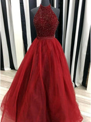 A-Linie Perlenbesetztes Tüll Langes Ballkleid Formelles Abendkleid