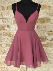 A-Linie, niedlich, V-Ausschnitt, Chiffon, kurz, Heimkehrkleider