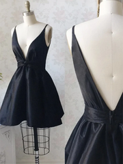 A-Linie, tiefer V-Ausschnitt, kurze Ballkleider aus Satin, Heimkehrkleider
