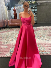 A-Linie Elegantes trägerloses Satin-Rosa Lange Abendkleider Brautjungfernkleider Abendkleid Ballkleid