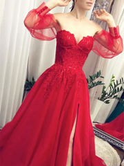 A-Linie Spitze Tüll Lange Ärmel Ballkleider Ärmel Formelle Abendkleider