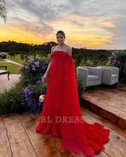 A-Linie Off The Shoulder Rot Chiffon Lange Abendkleider Brautjungfernkleider Abendkleid Ballkleid