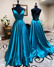 A-Linie Satin V-Ausschnitt Spaghettiträger Ballkleider