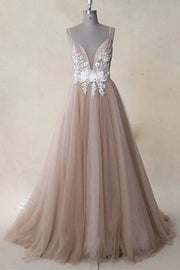 A-Linie Spaghettiträger Tüll Langes Ballkleid mit appliziertem Mieder