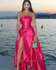 A-Linie trägerlos Hot Pink Schlitz Satin Abendkleider Brautjungfernkleider Abendkleid Ballkleid