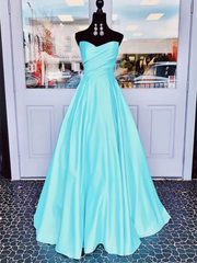 A-Linie trägerloses Satin-Ballkleid, lang, formelle Abendkleider