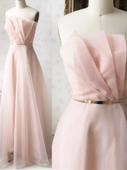 A-Linie Trägerlos Tüll Lange Ballkleider Formelle Abendkleider