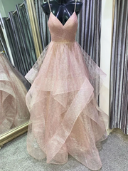 A-Linie V-Ausschnitt Tüll Pailletten Lange Ballkleider Formelle Abschluss-Abendkleider