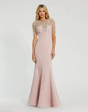Chic Pink Draped Pearl Beaded Mermaid Gown