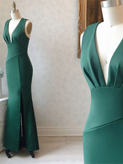 Meerjungfrau V-Ausschnitt Satin Lange Ballkleider Formelle Abendkleider