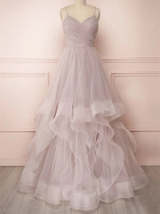 Spaghettiträger Rückenfrei Tüll Lange Ballkleider Formelle Abendparty Ballkleider