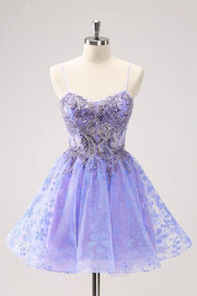 A-Linie, glitzerndes, florales Korsett-Kurzkleid für den Heimkehr