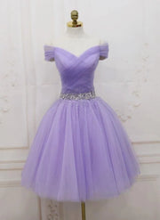 A-Linie Tüll Schulterfrei Perlenbesetzt Kurzes Abschlusskleid Homecoming-Kleid