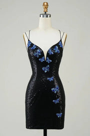 Glitzerndes, enges Homecoming-Kleid mit Pailletten-Schmetterlingen