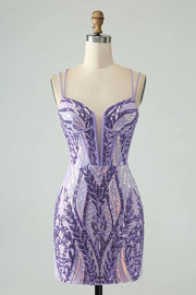 Glitzerndes, figurbetontes, rückenfreies, kurzes Homecoming-Kleid mit V-Ausschnitt und Pailletten