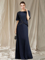 A-Linien-Kleid für die Brautmutter, elegant, mit Rundhalsausschnitt, bodenlang, Chiffon, kurze Ärmel, mit Kristallen