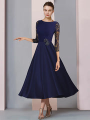 A-Linien-Kleid für die Mutter der Braut, formelle Kirche, Party, elegant, U-Ausschnitt, knielang, Spitze, Stretchstoff, 3/4-Ärmel mit Kristallbrosche
