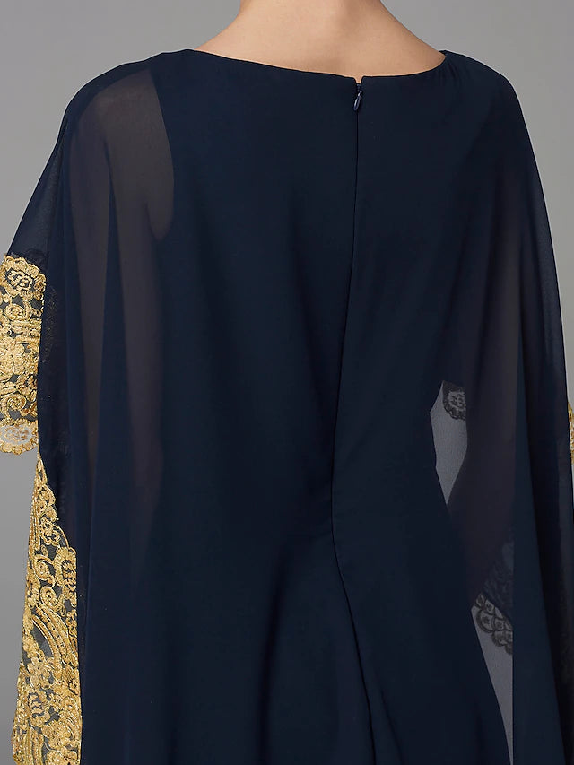 A-Linie Kleid für die Brautmutter, Übergröße, elegant, U-Boot-Ausschnitt, Schleppe, Chiffon, ärmellos, mit Spitze