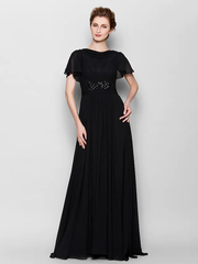 A-Linien-Kleid für die Brautmutter, durchsichtig, U-Boot-Ausschnitt, bodenlang, Chiffon, kurze Ärmel, mit Perlen