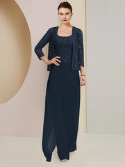 Jumpsuit/Hosenanzug, 3-teiliges Kleid für die Mutter der Braut, formelle Hochzeitsgäste, Übergröße, eleganter U-Ausschnitt, bodenlang, Chiffon, Spitze, ärmellos, Wickelkleid inklusive Pailletten - US 2 / UK 6 / EU 32