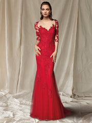 Meerjungfrau/Trompete Kleid für die Mutter der Braut, luxuriös, elegant, V-Ausschnitt, Schleppe, Spitze, Tüll, halbe Ärmel mit Falten, Applikationen - US 2 / UK 6 / EU 32