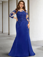 Meerjungfrau/Trompete Kleid für die Brautmutter, Übergröße, elegant, Rundhalsausschnitt, bodenlang, Chiffon, Spitze, 3/4-Ärmel, nein, mit Applikationen - US 2 / UK 6 / EU 32