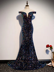 Meerjungfrau/Trompete Kleid für die Mutter der Braut, Hochzeitsgast, elegant, funkelnd und glänzend, schulterfrei, mit Pailletten besetzt, Flügelärmel, einfarbig