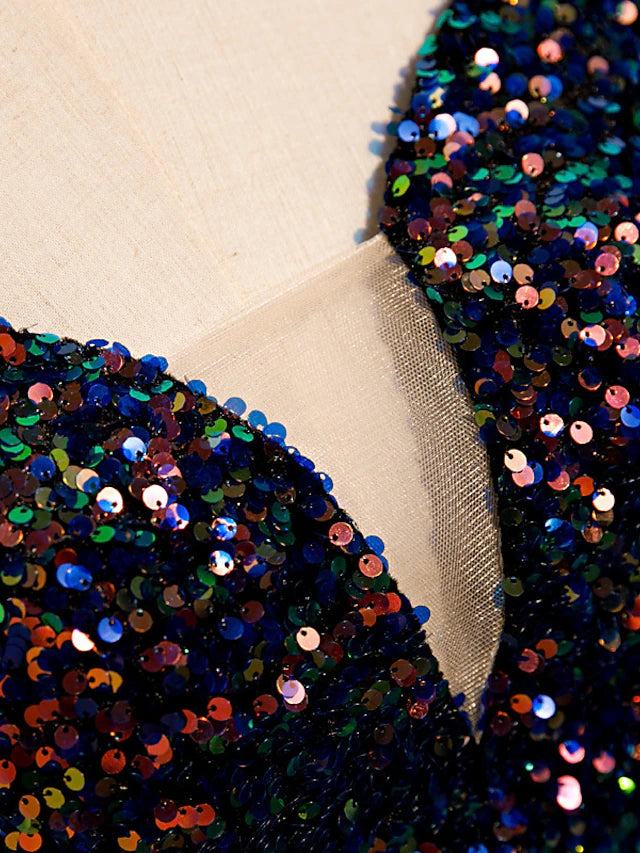 Meerjungfrau/Trompete Kleid für die Mutter der Braut, Hochzeitsgast, elegant, funkelnd und glänzend, schulterfrei, mit Pailletten besetzt, Flügelärmel, einfarbig - US 2 / UK 6 / EU 32