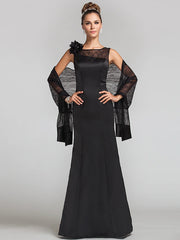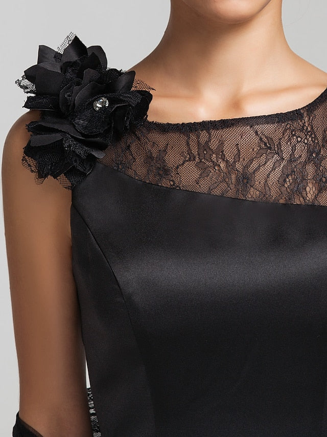 Meerjungfrau/Trompete Kleid für die Brautmutter, Wickelkleid inklusive, Rundhalsausschnitt, bodenlang, Satinspitze, ärmellos, mit Spitzenknöpfen, Blumenmuster