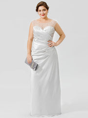 Etuikleid / Säulenkleid für die Mutter der Braut, klassisch und zeitlos, elegant und luxuriös, Übergröße, Rundhalsausschnitt, bodenlang, Satin, ärmellos, mit Falten, Kristallen