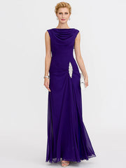 Etuikleid/Säulenkleid für die Brautmutter, Farbblock, Schnürung, Wasserfallausschnitt, knöchellang, Chiffon-Charmeuse, ärmellos, mit überkreuzten Perlen
