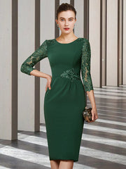 Etuikleid/Säulenkleid für die Brautmutter, elegant, Rundhalsausschnitt, kurz/mini, Chiffon, Spitze, lange Ärmel mit Schärpe/Band-Applikationen