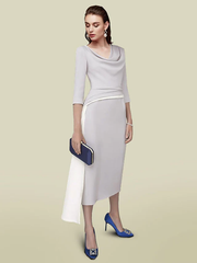 Kleid für die Brautmutter, elegant, Rundhalsausschnitt, knielang, italienischer Satin, halbe Ärmel mit Rüschen