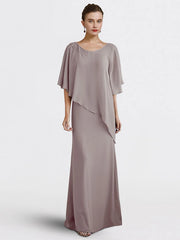 Etuikleid/Säulenkleid für die Brautmutter, Übergröße, elegant, V-Ausschnitt, bodenlang, Chiffon, halbe Ärmel, mit Perlen