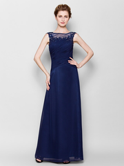 Kleid für die Brautmutter, durchsichtig, U-Ausschnitt, bodenlang, Chiffon, ärmellos, mit überkreuzten Applikationen
