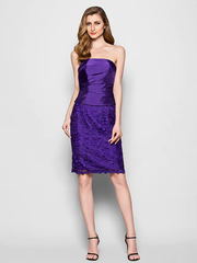 Kleid für die Brautmutter, trägerlos, knielang, Spitze, Taft, ärmellos, mit Spitzenfalten