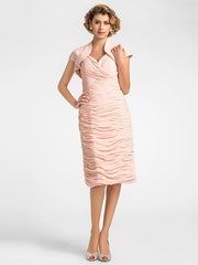 Etuikleid/Säulenkleid für die Brautmutter, Träger, knielang, Chiffon, ärmellos, mit gekreuzten Rüschen
