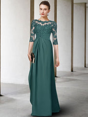 Etuikleid/Säulenkleid in Übergröße, geschwungen, elegantes Kleid für die Brautmutter, Rundhalsausschnitt, bodenlang, Chiffon, Spitze, halbe Ärmel mit Falten, gerüschten Applikationen - US 2 / UK 6 / EU 32 / Wie Bild1