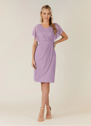 Etuikleid mit V-Ausschnitt, plissiert, knielang, Glyzinien, Abendkleider, Abendkleid, Kleider für die Brautmutter - US 2 / UK 6 / EU 32