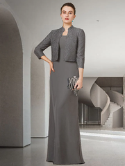 Kleid für die Brautmutter, elegant, mit Rundhalsausschnitt, bodenlang, Chiffon, Spitze, halbe Ärmel, mit Applikationen