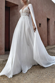 A-Linie Boho V-Ausschnitt Spitzenapplikationen Brautkleid