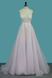 A-Linie Ballkleid mit tiefem V-Ausschnitt, Spaghettiträgern und Applikationen