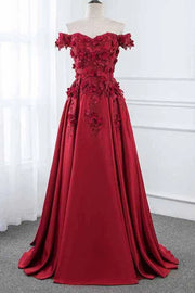 A-Linien-Ballkleid aus Satin mit Blumenmuster und schulterfreiem Spitzendetail