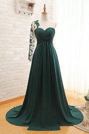 A-Linie One-Shoulder-Ballkleid mit langen Ärmeln