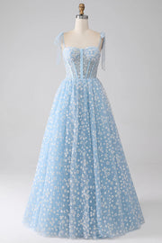 A-Linien-Ballkleid mit Print, Plissee und Stufen, Spaghettiträgern, Korsett-Ballkleid