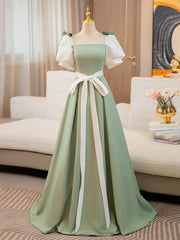 Langes Ballkleid aus Satin in A-Linie mit Puffärmeln