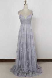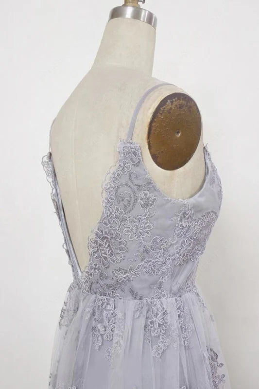A-Linie Spaghettiträger Spitzenkleid V-Ausschnitt Ärmellos Formelle Ballkleider