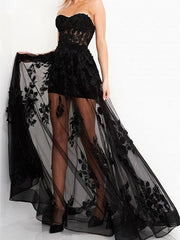 A-Linie trägerloses bodenlanges Abendkleid