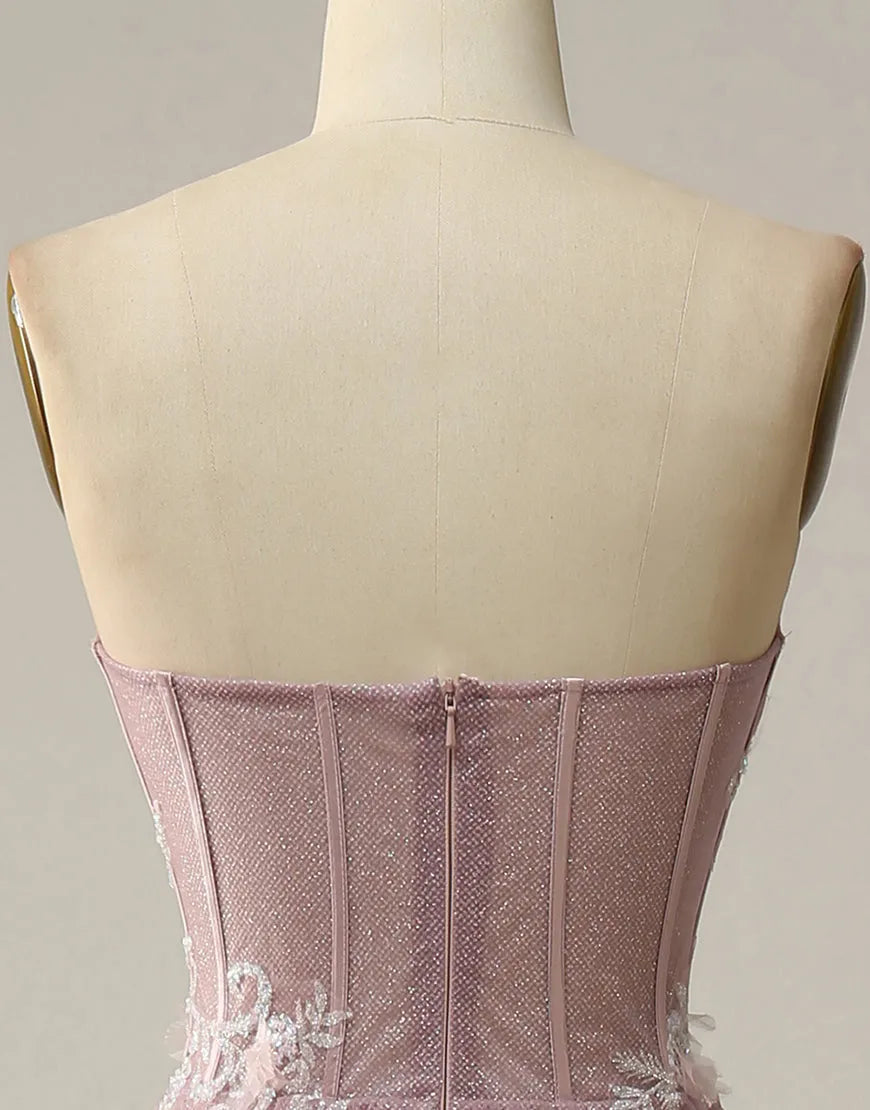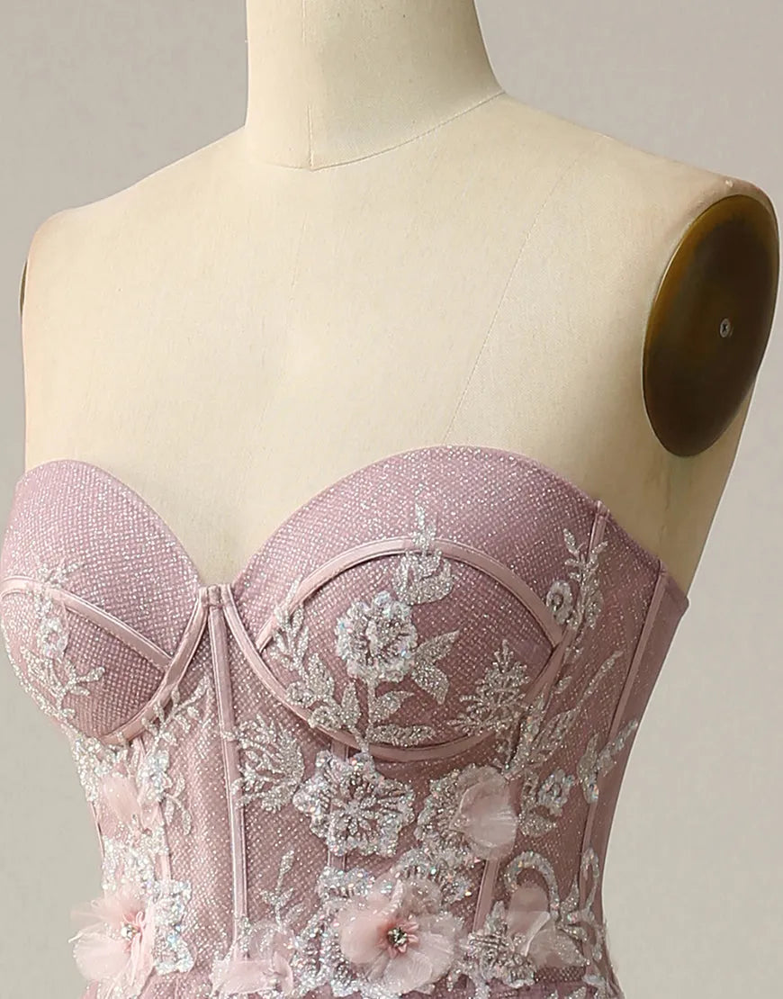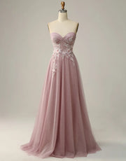A-Linien-Ballkleid mit herzförmigem Ausschnitt und langen Applikationen