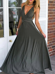 A-Linie V-Ausschnitt Rückenfrei Chiffon Lange Ballkleider